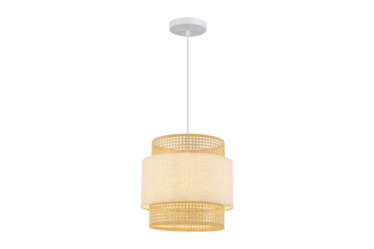 Ceiling luminaire ABRA, 6168, AC220-240V, 50/60Hz, 1*E27, max. 40W, IP20, vid. 40 cm, krēmkrāsā ABRA kolekcijā ietilpst divas piekaramās lampas: parastā lampa ar 40 cm diametru un trīskārša lampa ar 20 cm diametra abažūru. Elegants un smalks dizains, kas iedvesmots no BOHO stila. Izgatavota no augstas kvalitātes auduma un ratana. Šīs kolekcijas lampas lieliski izskatīsies dažādos interjeros: viesistabā, ēdamistabā vai guļamistabā. Ideāls risinājums dabiskuma un boho stila smalkuma mīļotājiem.