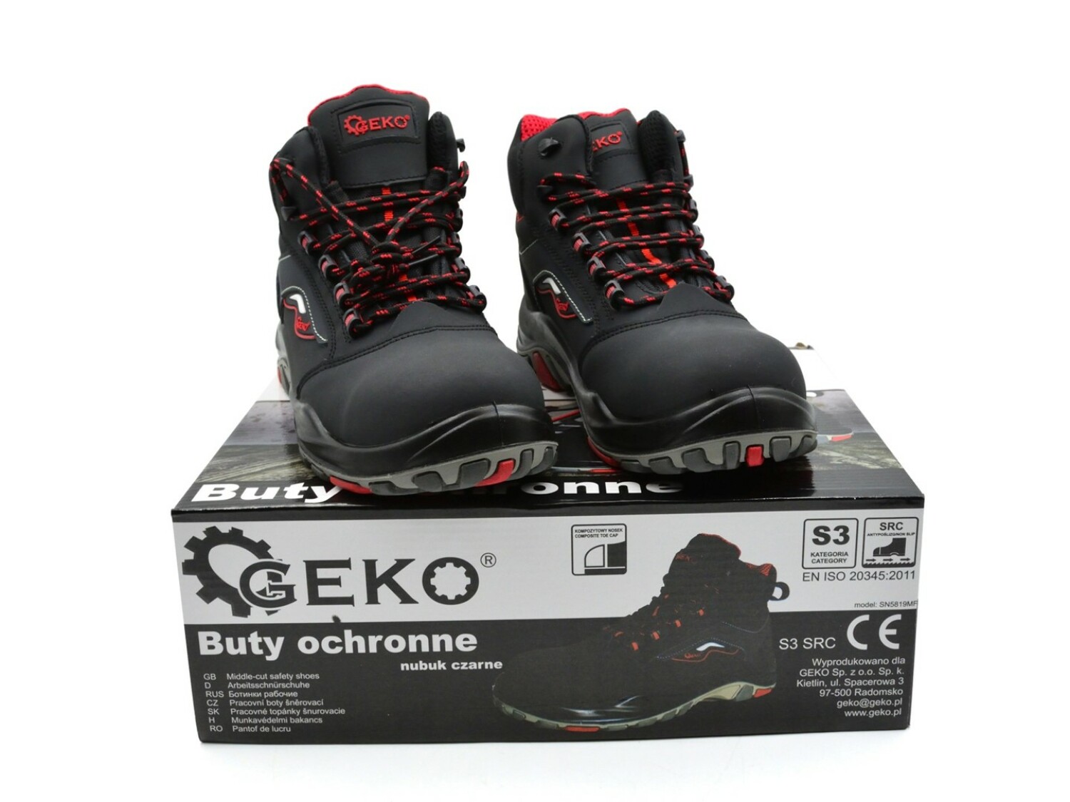 Augstas kvalitātes, funkcionāli PREMIUM S3 SRC klases ādas darba zābaki. Populārā GEKO zīmola zābaki ir izstrādāti, lai aizsargātu kājas pret ārējiem faktoriem, un to dizains ir vērsts uz darba komforta un drošības maksimālu uzlabošanu. Apavi atbilst standartam, kas nosaka drošības apavu prasības: CE EN ISO 20345: 2011.