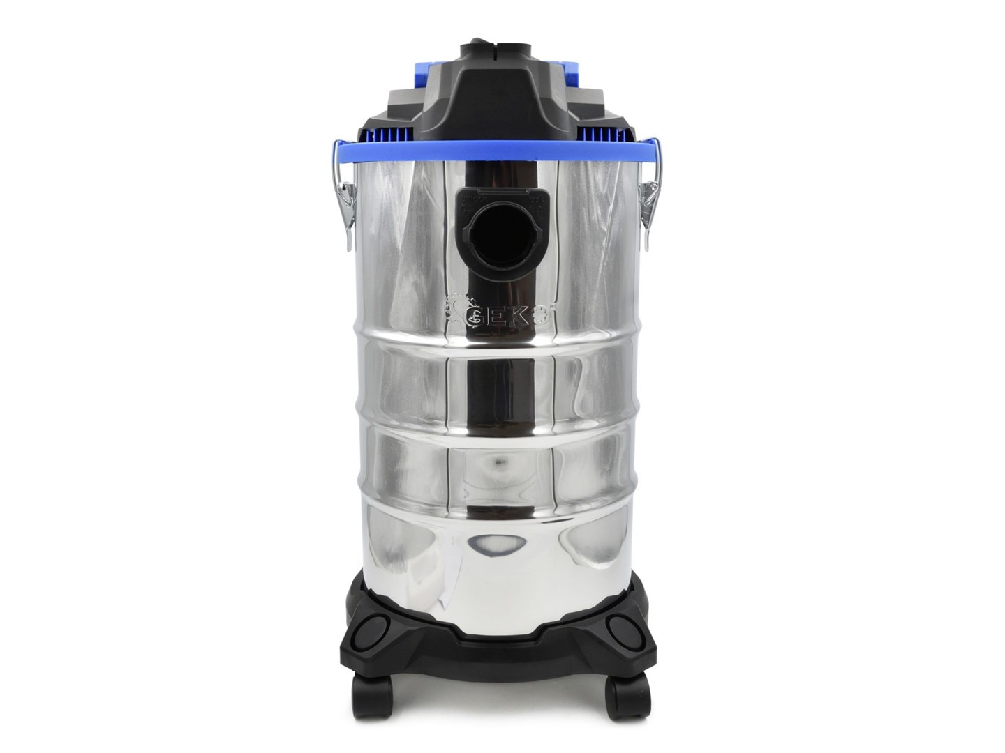 GEKO Heavy Duty mitrais un sausais putekļu sūcējs ar izturīgu nerūsējošā tērauda tvertni un jaudīgu 1400W motoru, nodrošinot izcilu tīrīšanas jaudu.