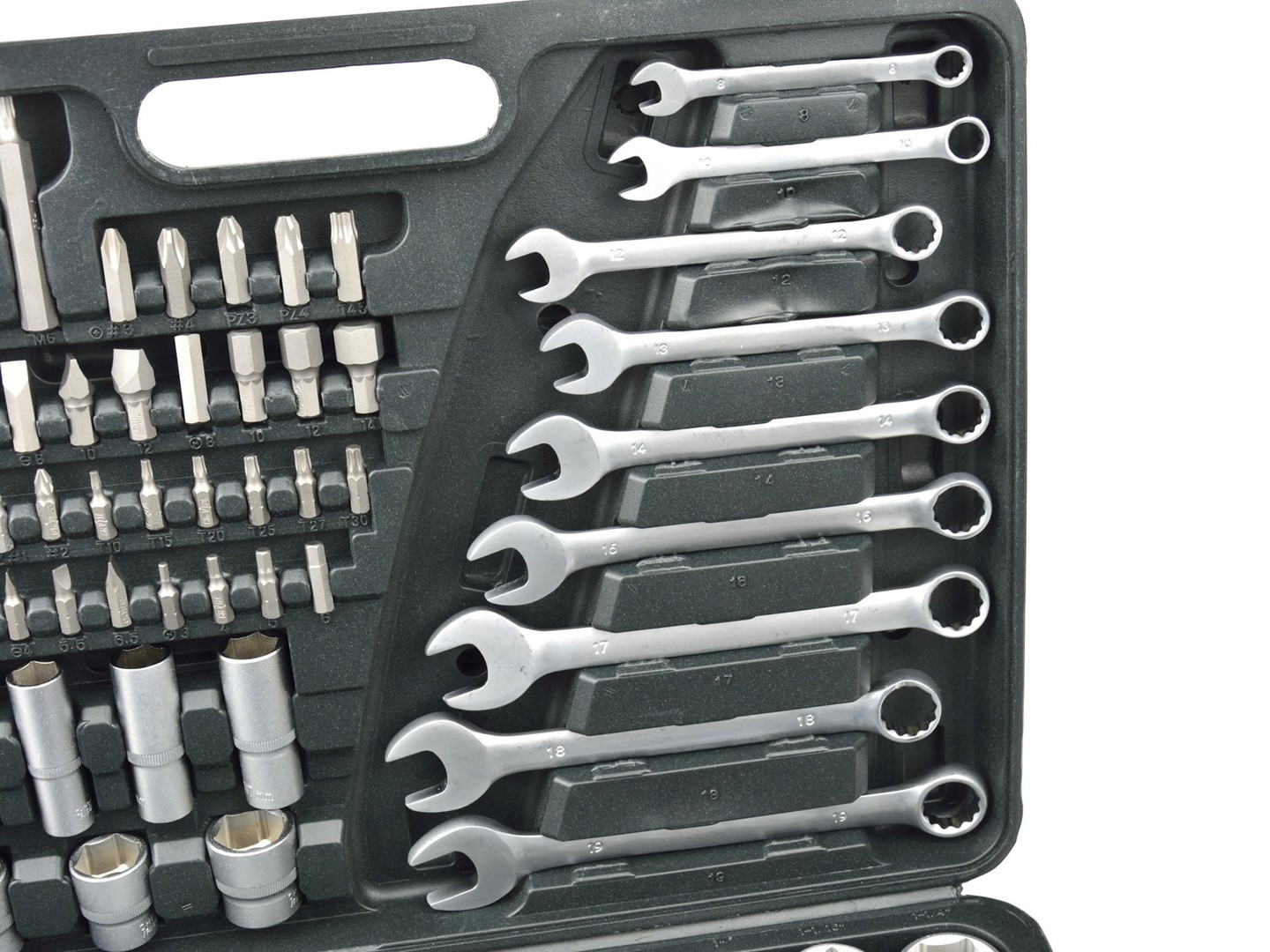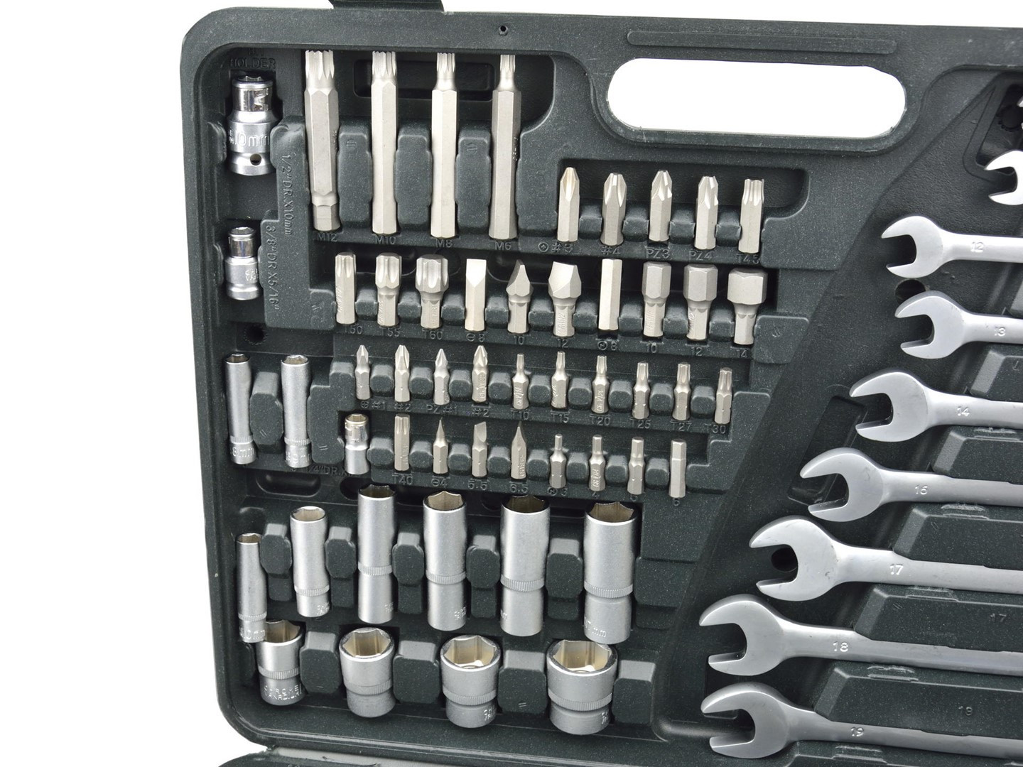 - 3/8" metriski uzgaļi: 9, 10, 11, 12, 13, 14, 15, 16, 17, 18, 19, 20, 21 mm
