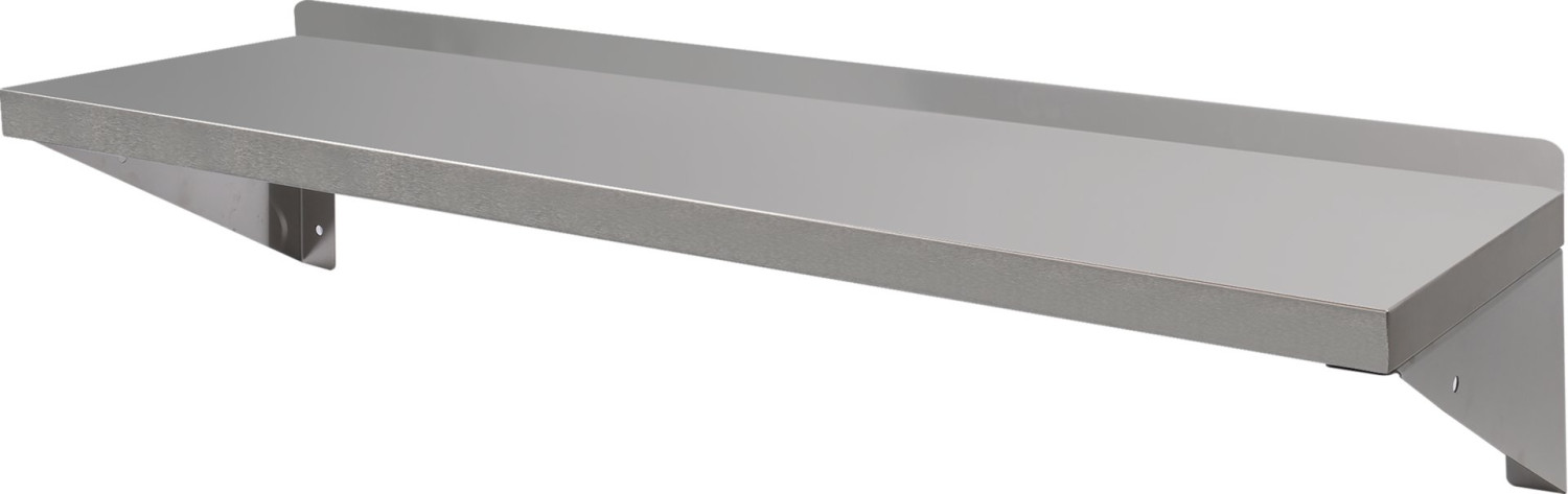 Karājamā plaukts ar aizmugurējo malu. Mala novērš netīrumu iekļūšanu starp plauktu un sienu. Tas izgatavots no augstas kvalitātes nerūsējošā tērauda, kas ir viegli tīrāms.