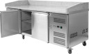 Ledusskapja pica galds ar izmēriem 2025x800x1000mm un kameru ar ietilpību 580L ir paredzēts pārtikas uzglabāšanai temperatūras diapazonā no -2 līdz +8°C.