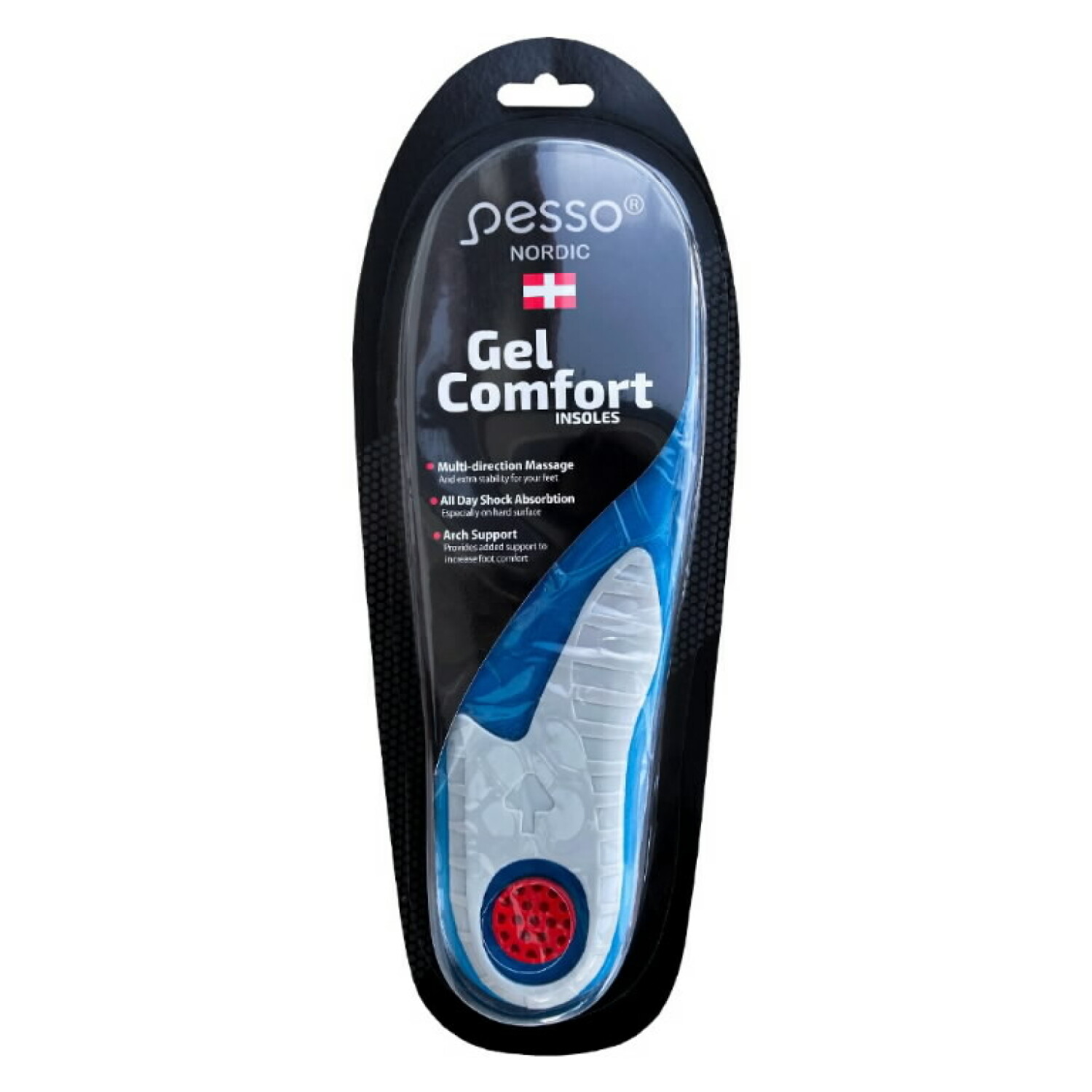 Gel Comfort vidpadžiai 41-46, Pesso, GELCOMFORT-L, yra puikus sprendimas komfortui ir paramai jūsų pėdoms. Šie geliniai vidpadžiai sugeria smūgius ir užtikrina komfortą, taip pat tolygiai paskirsto apkrovą visos pėdos ilgumu.
